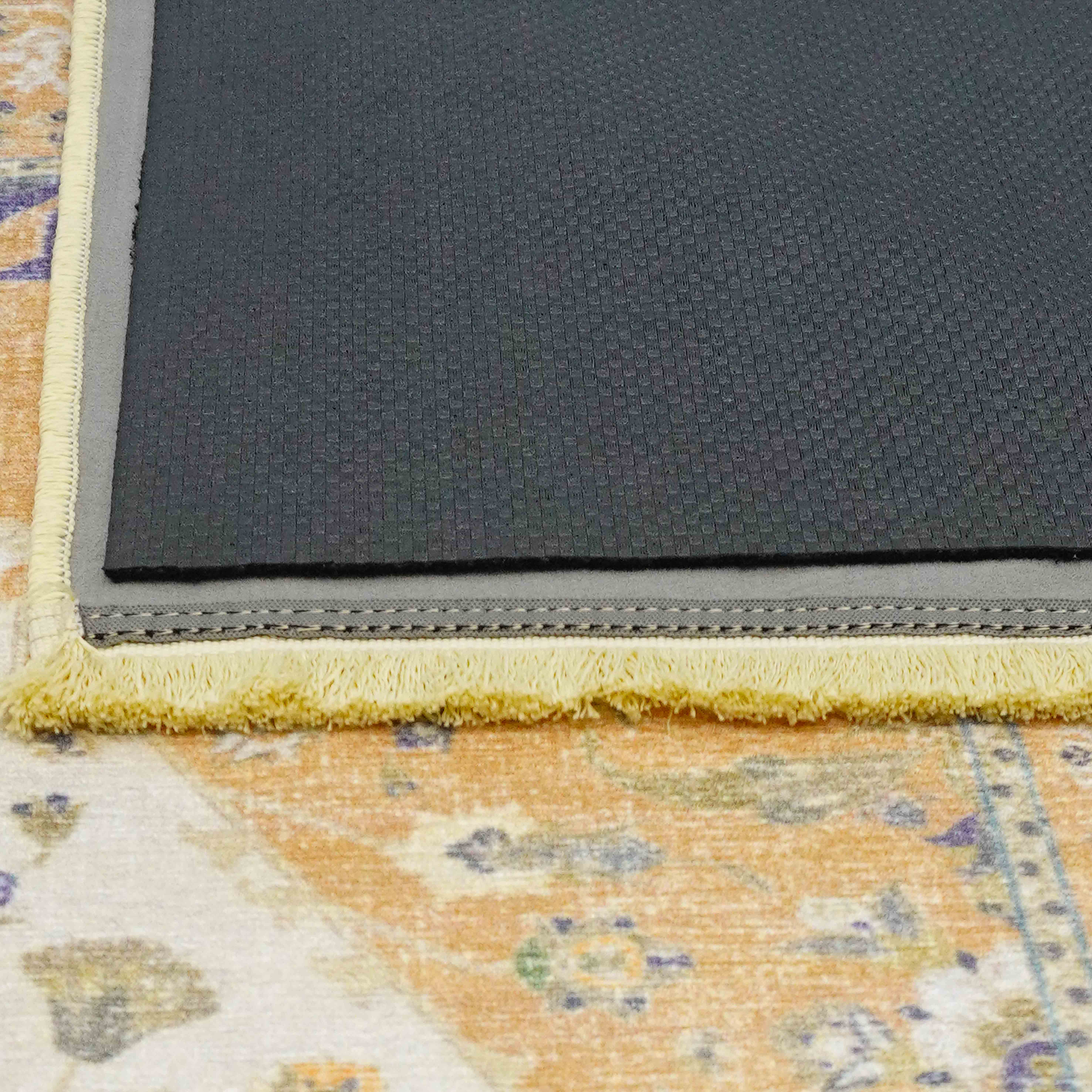 Нижний слой противоскользящий. Он прочен и долговечен. Подложка под ковер нижнего слоя устойчива и не скользит на любой поверхности.